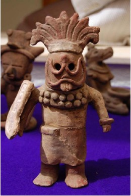 In the images above, a Mesoamerican masked warrior is depicted. The figure can be seen as the Steward. On the right, the mask has been lifted, and a child, with gentle essence predominating, appears.